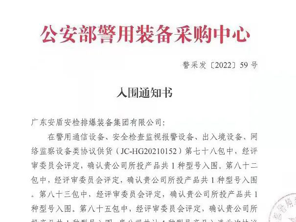 入圍丨新一期公安部警采中心協(xié)議供貨企業(yè)—廣東安盾安檢排爆裝備集團(tuán)有限公司